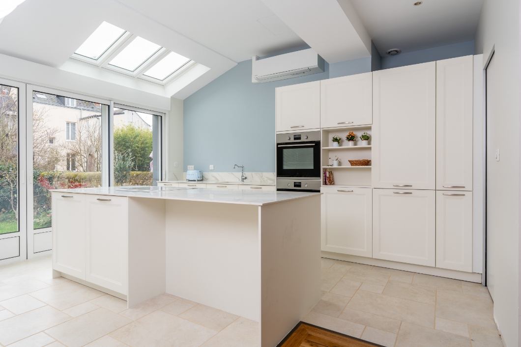Dans cette maison typique des Prébendes, le rez-de-chaussée, long et étroit comme souvent dans ces maisons tourangelles, était difficile à exploiter pleinement. L’ancienne véranda, déjà présente, n’était plus thermiquement efficace et nécessitait une reprise pour créer un espace agréable et cohérent.