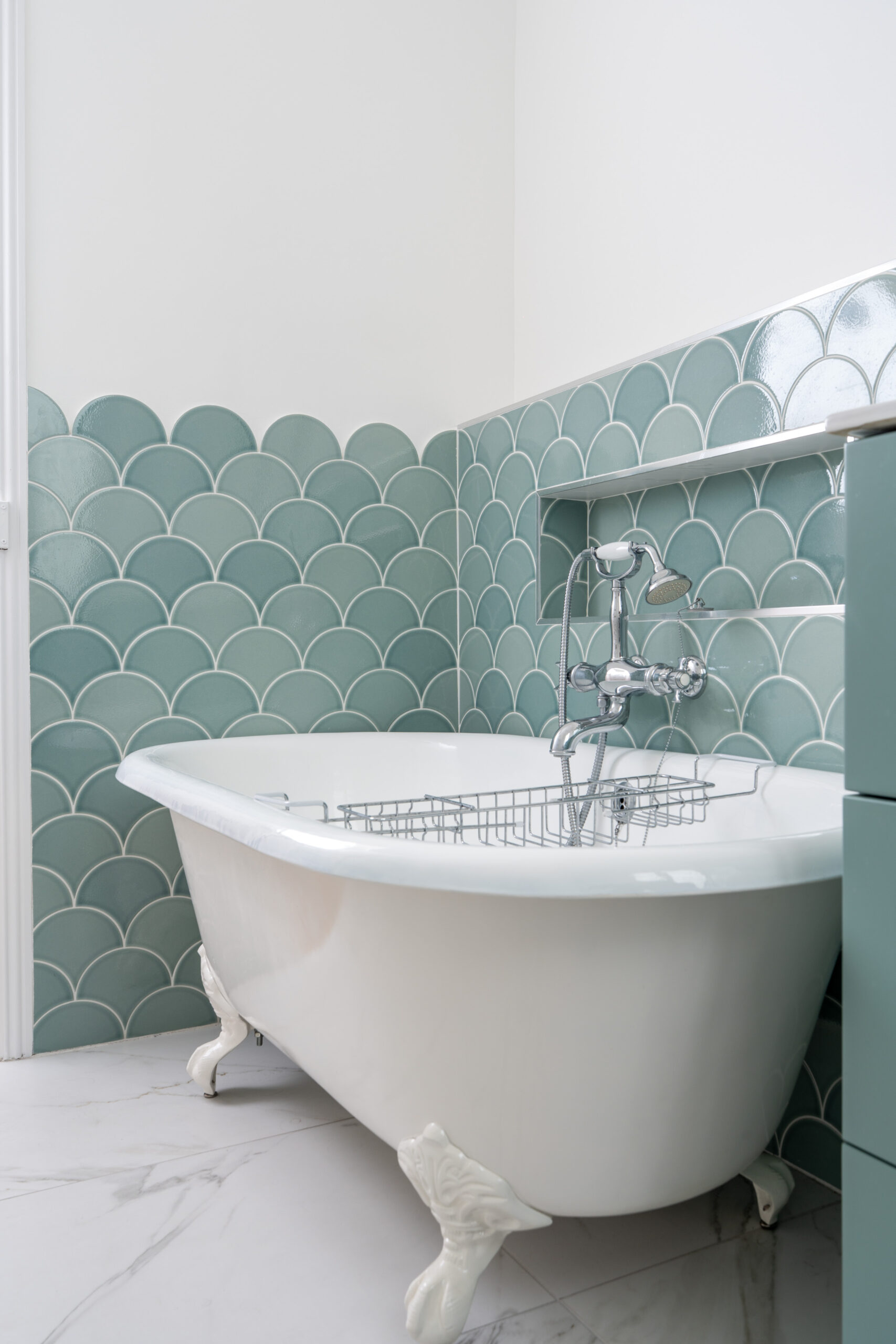 - création d’une entrée délimitée, avec carreaux de ciment et verrière ancienne, apportant charme et fonction