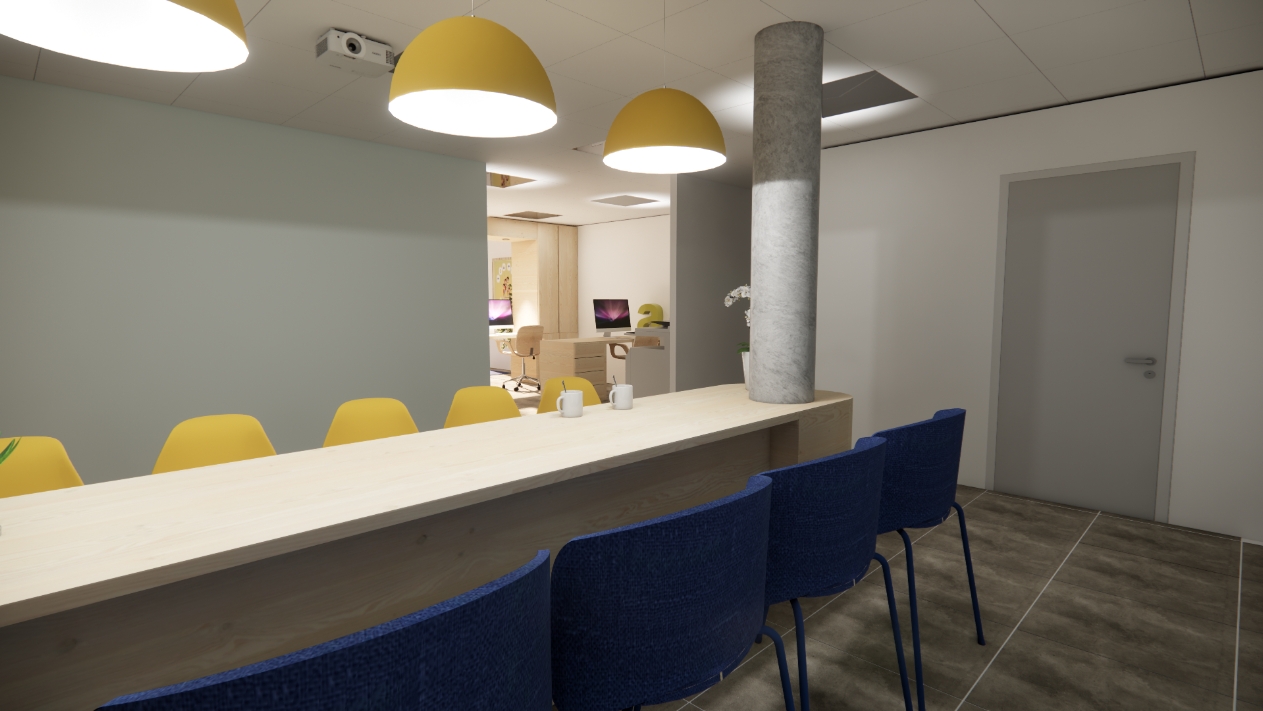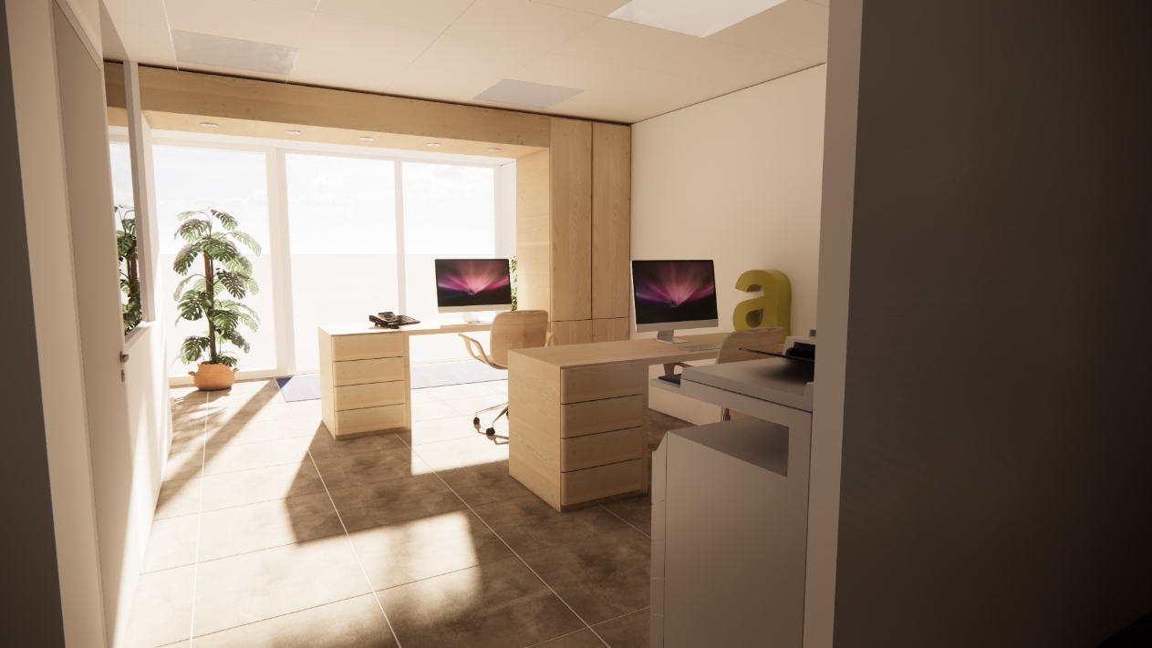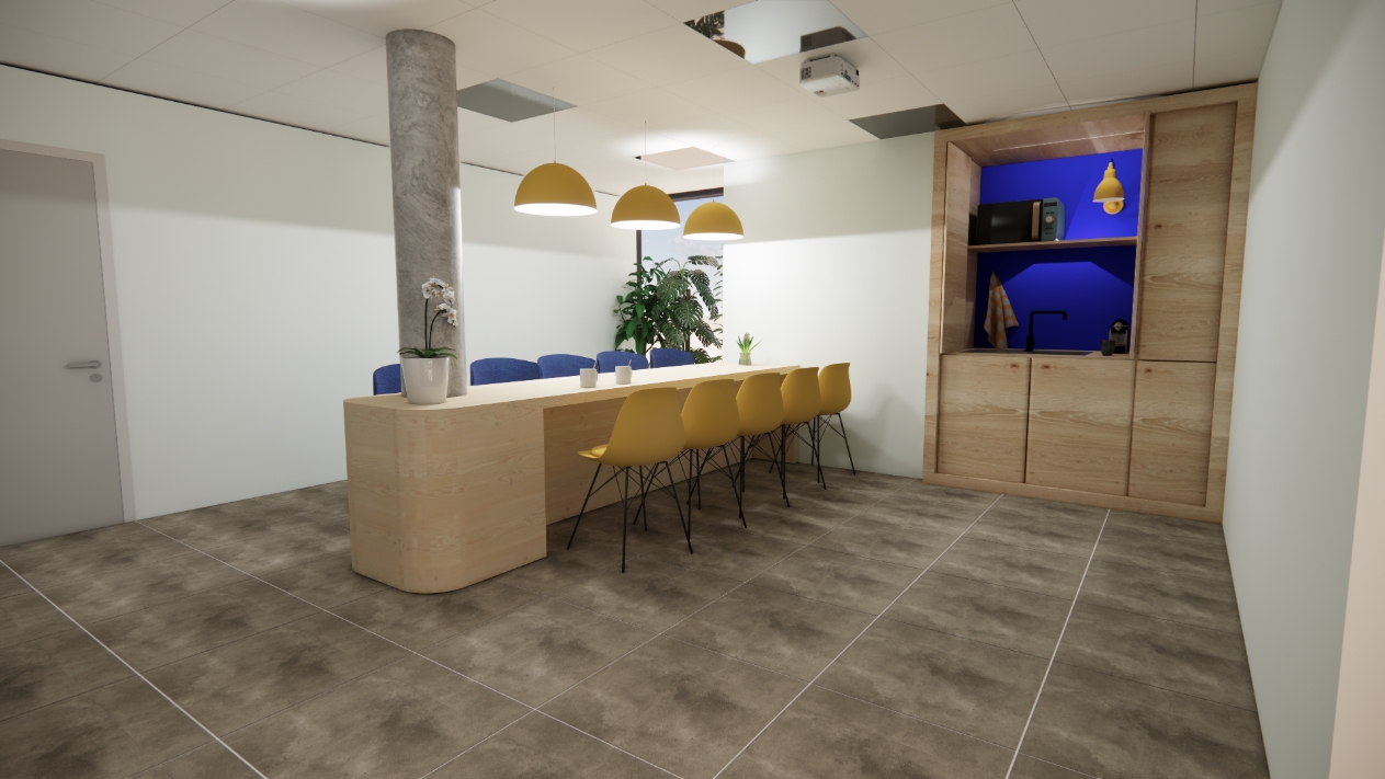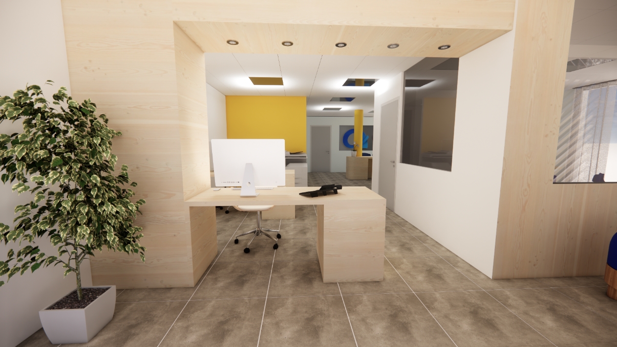 Les choix de matériaux, de couleurs et d’agencements sont conçus pour créer une ambiance cohérente et refléter l’image de l’entreprise, comme l’illustrent les planches d’ambiance et visuels 3D. La mission était exclusivement de conception, le projet étant prévu en VFA.