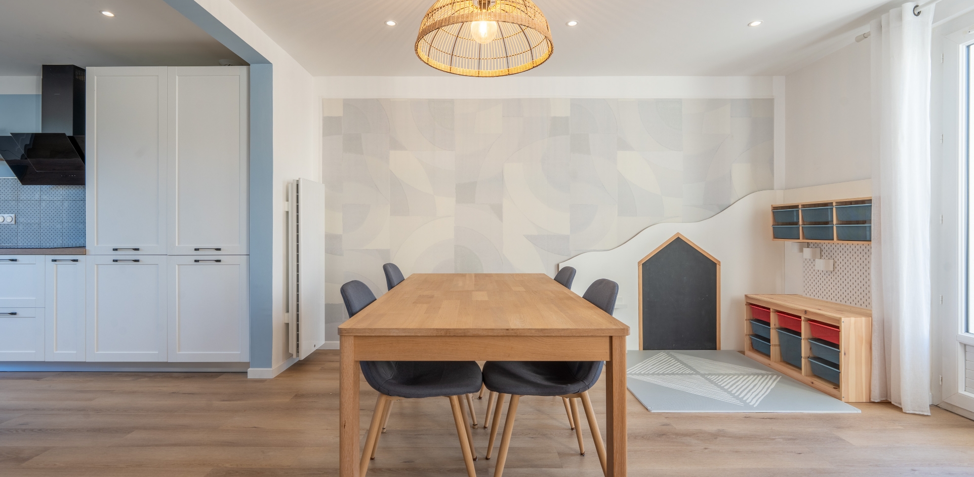 - Des choix coordonnés de matériaux : papiers peints, sols, cuisine, crédence… pour une harmonie parfaite